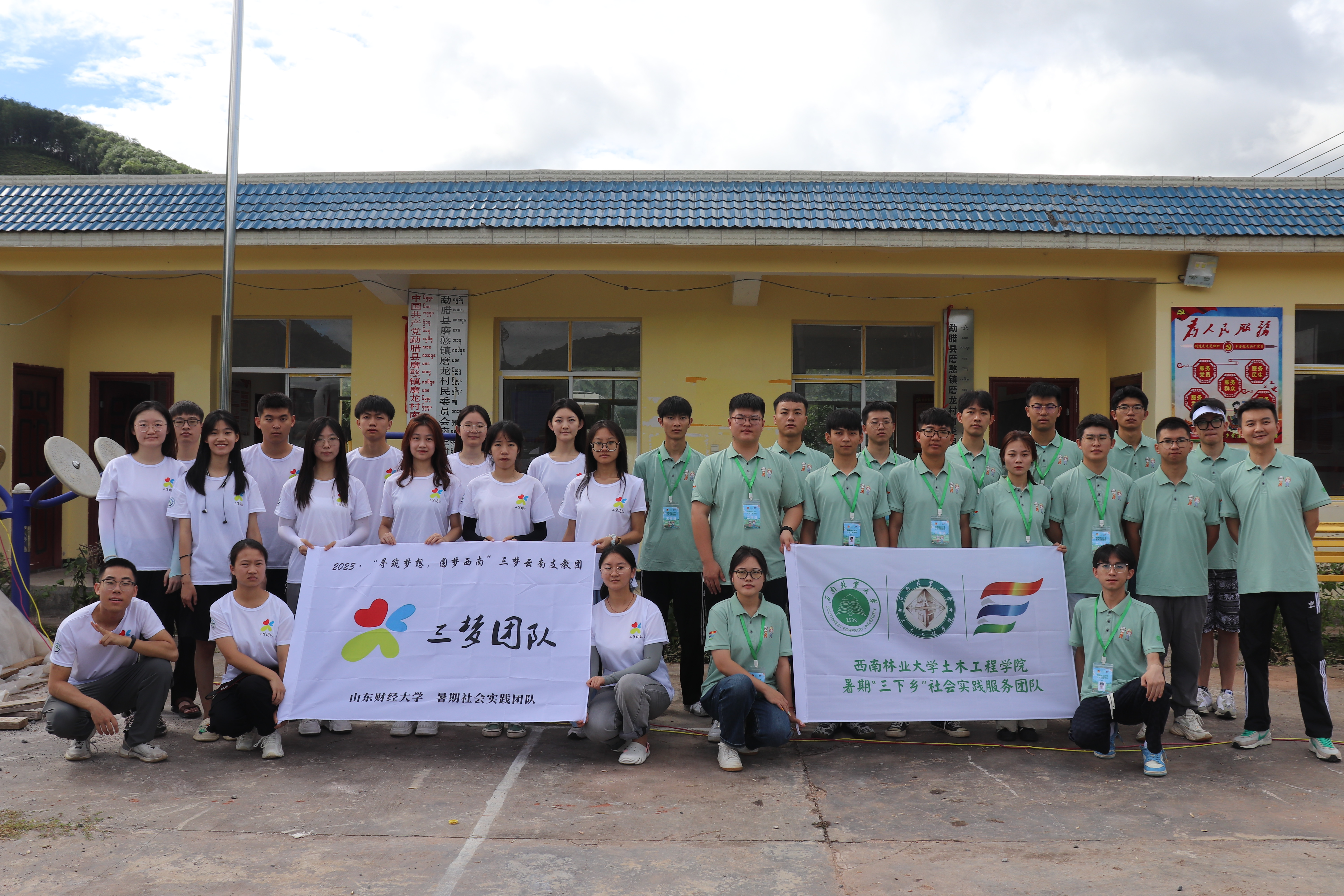 7月14日-15日,WilliamHill中文官方网站暑期“三下乡”社会实践队来到本次实践活动的第三站——磨憨镇南歪村、老陶村,并与来自山东财经大学的“三梦”社会实践团队共同开展活动。两个实践团队进行了富有意义的学习交流并合影留念。
