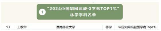 在“2024中国知网高被引学者 Top 1%”预发布名单中,WilliamHill中文官方网站王秋华教授入选林学学科Top 1%的140位学者之一。