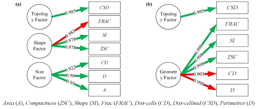 图2. 全球菱形离散格网质量评价体系(a)非等积菱形格网(格网大小-形状-拓扑类),(b)等积菱形格网(固有几何属性-拓扑类)