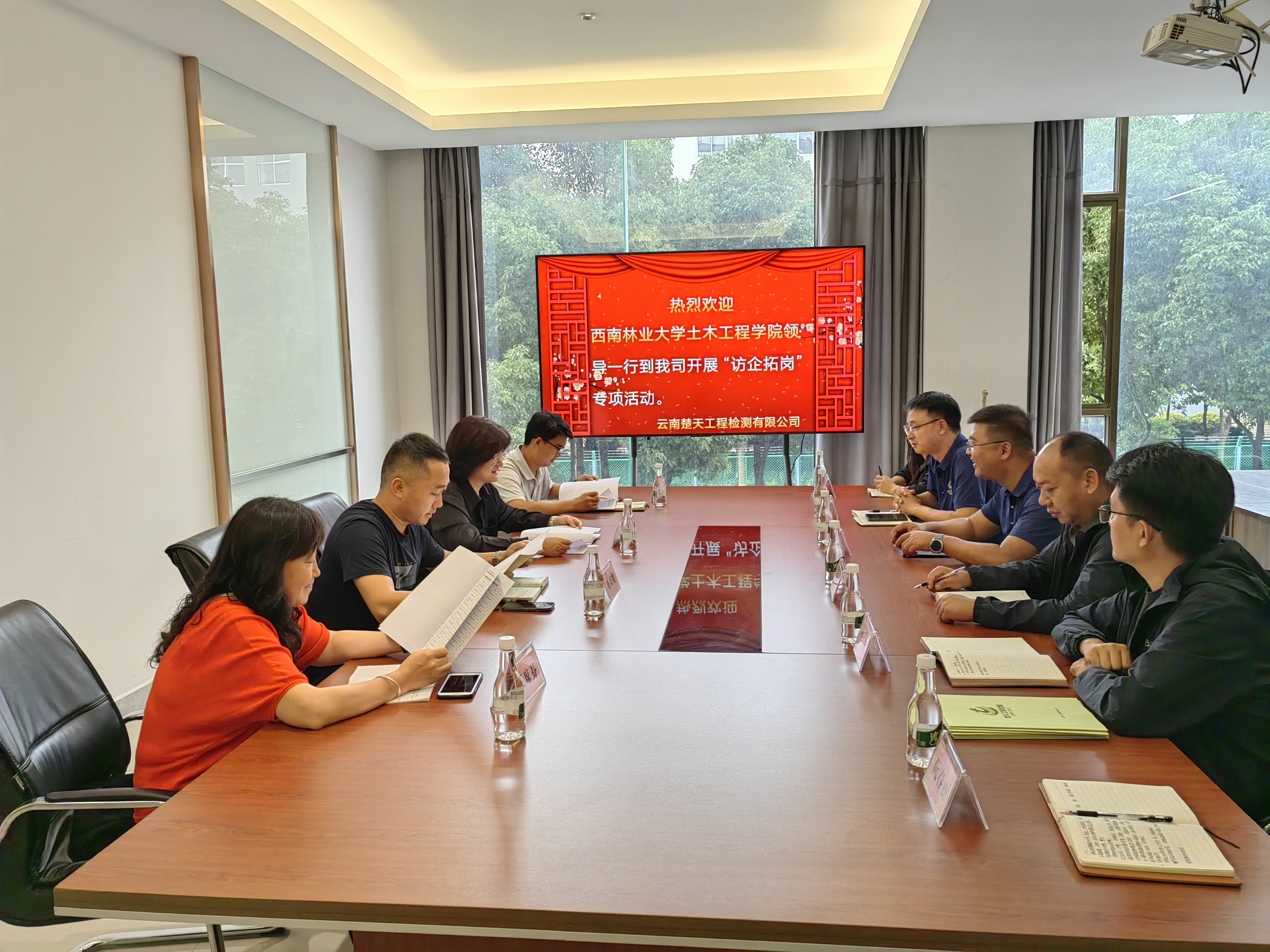 7月3日,WilliamHill中文官方网站经理孙微微带领土木工程系教师,前往云南睿建工程有限公司(简称:睿建)和云南楚天工程检测有限公司(简称:楚天)开展访企拓岗专项活动,并签署校企合作协议。