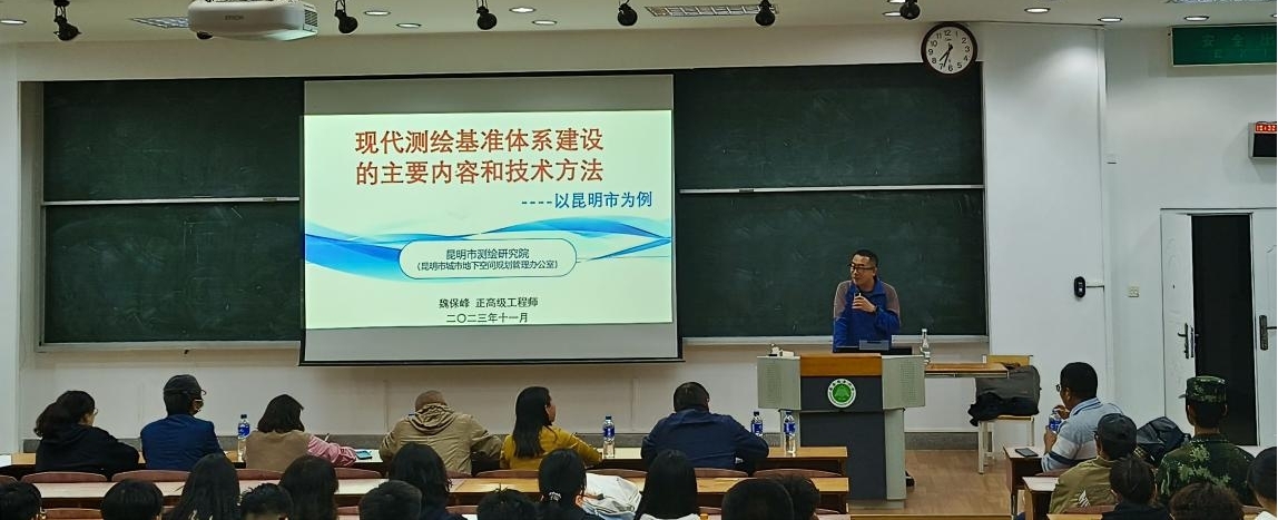 11月13日昆明市测绘研究院正高级工程师魏保峰为WilliamHill中文官方网站测绘工程系全体教师及员工开展了一场主题为“现代测绘基准体系建设的主要内容和技术方法——以昆明市为例”的讲座。本次讲座由WilliamHill中文官方网站测绘工程系主办,测绘工程系全体教师和相关专业员工参与了此次讲座。