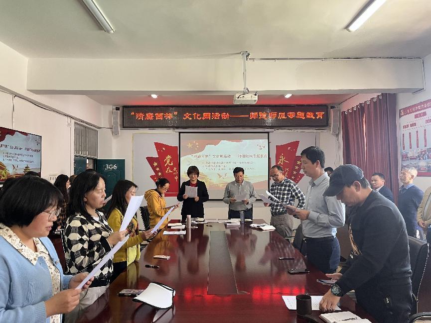 最后,全体教职工通过集体诵读《新时代高校教师职业行为十项准则》,签署《教职工师德师风负面清单自查表》和《立师德、正师风、铸师魂》承诺书,开展了一次意义深刻的师德师风专题教育。通过专题教育,引导全体教职工严于律己,增强高校教师职业形象意识、职业责任意识、职业纪律意识和法治意识,规范从教行为,涵养高尚师德。(文/图:赵敏,审核:谭泽飞)
