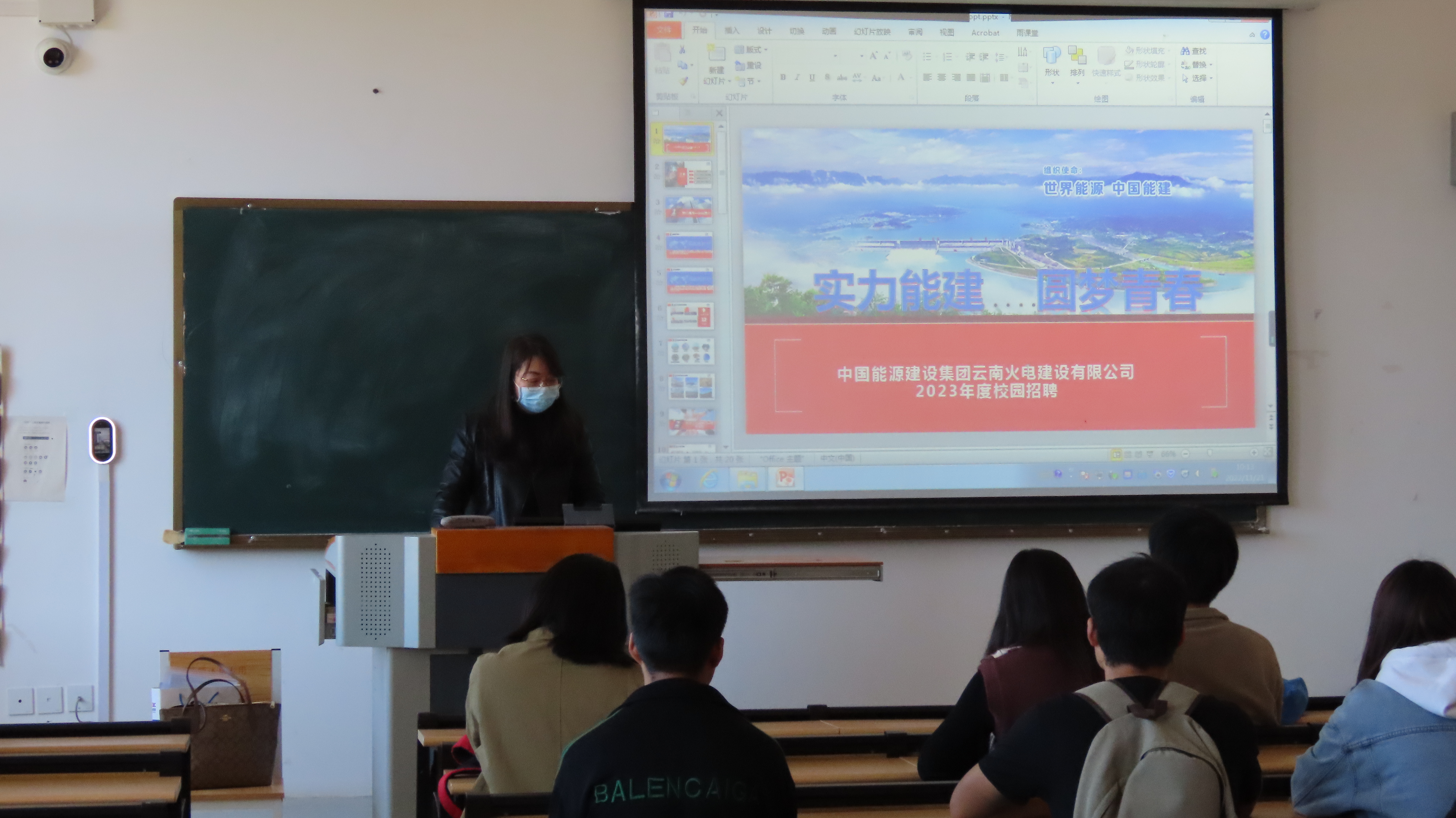 为进一步促进和提升毕业生就业质量。11月21日上午,由公司组织,中国能源建设集团云南火电建设有限公司在第四教学楼404召开2023届毕业生校园招聘宣讲会。