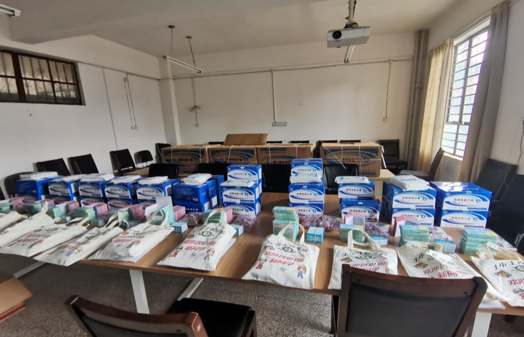 为方便做好新生入校的相关工作安排,公司为每一位新生辅导员、班主任配置了包含常用办公用品的文件袋,为每一位新生配置了包含口罩、体温计、迎新刊、校牌等物资的防疫工作袋,方便大家在入校初期工作的顺利开展。