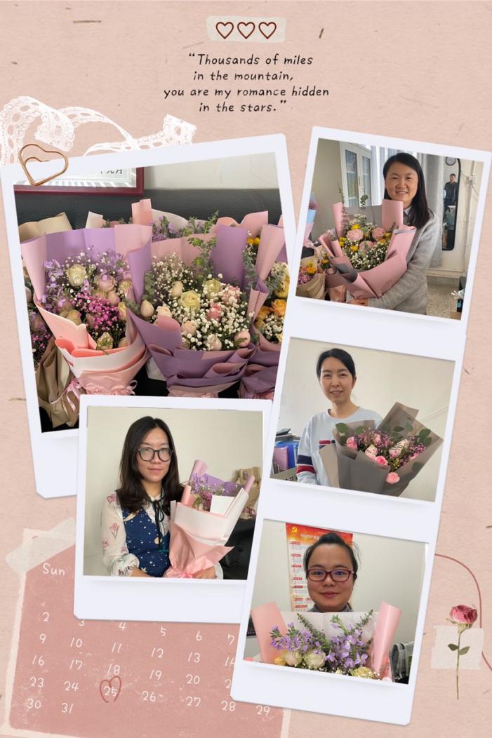 在过去的一年里,WilliamHill中文官方网站女职工们以“巾帼不让须眉”之势,用高度的责任心和敬业情操,在自己平凡的岗位上挥洒着辛劳和汗水,谱写了WilliamHill中文官方网站新的发展篇章。一束花不仅是一份情深惬意的关怀,更是一份对美好未来的祝愿,它将激励女教职工们在充满爱的2021年以更加饱满的热情投入到新学期的工作中来。