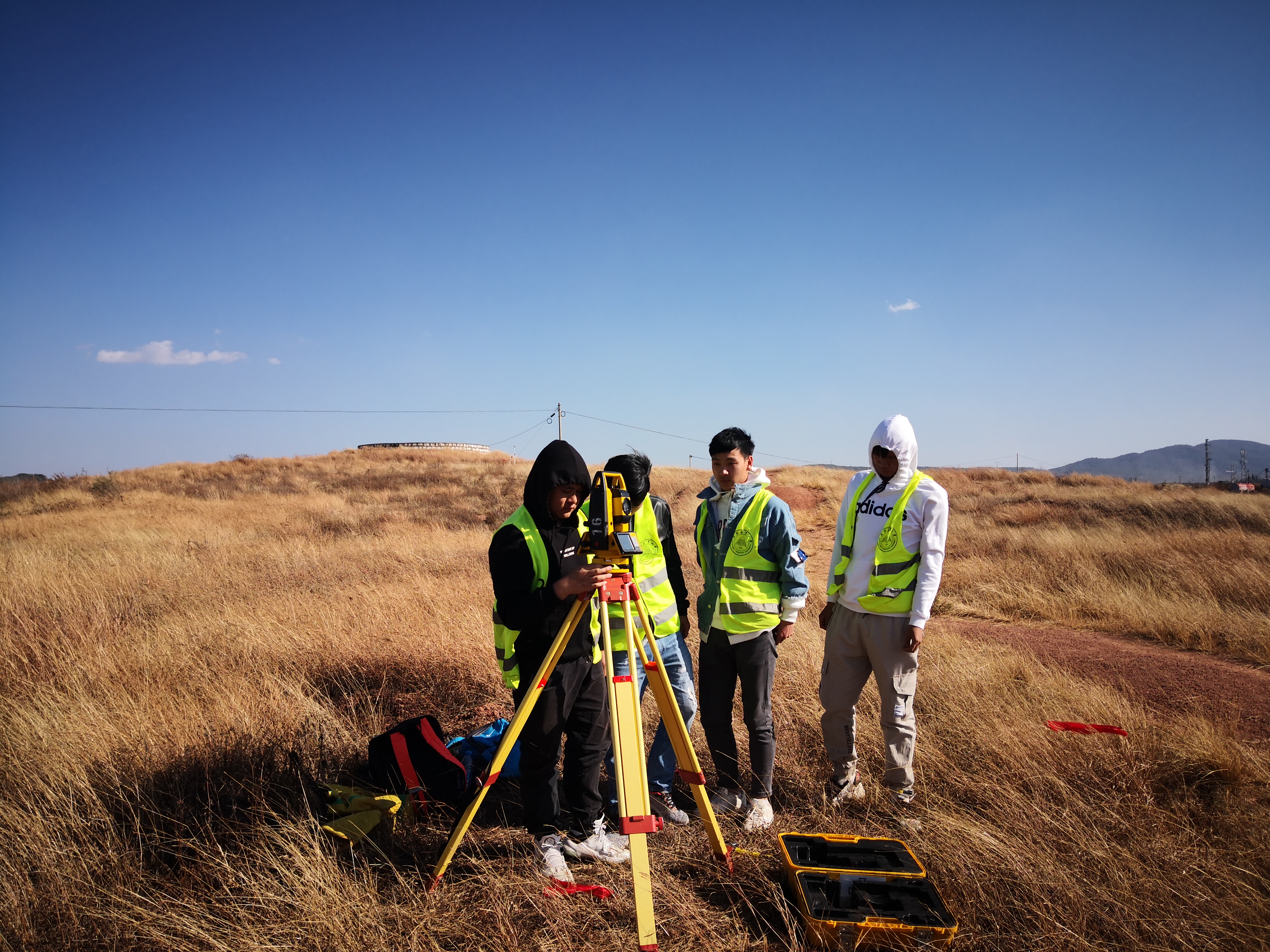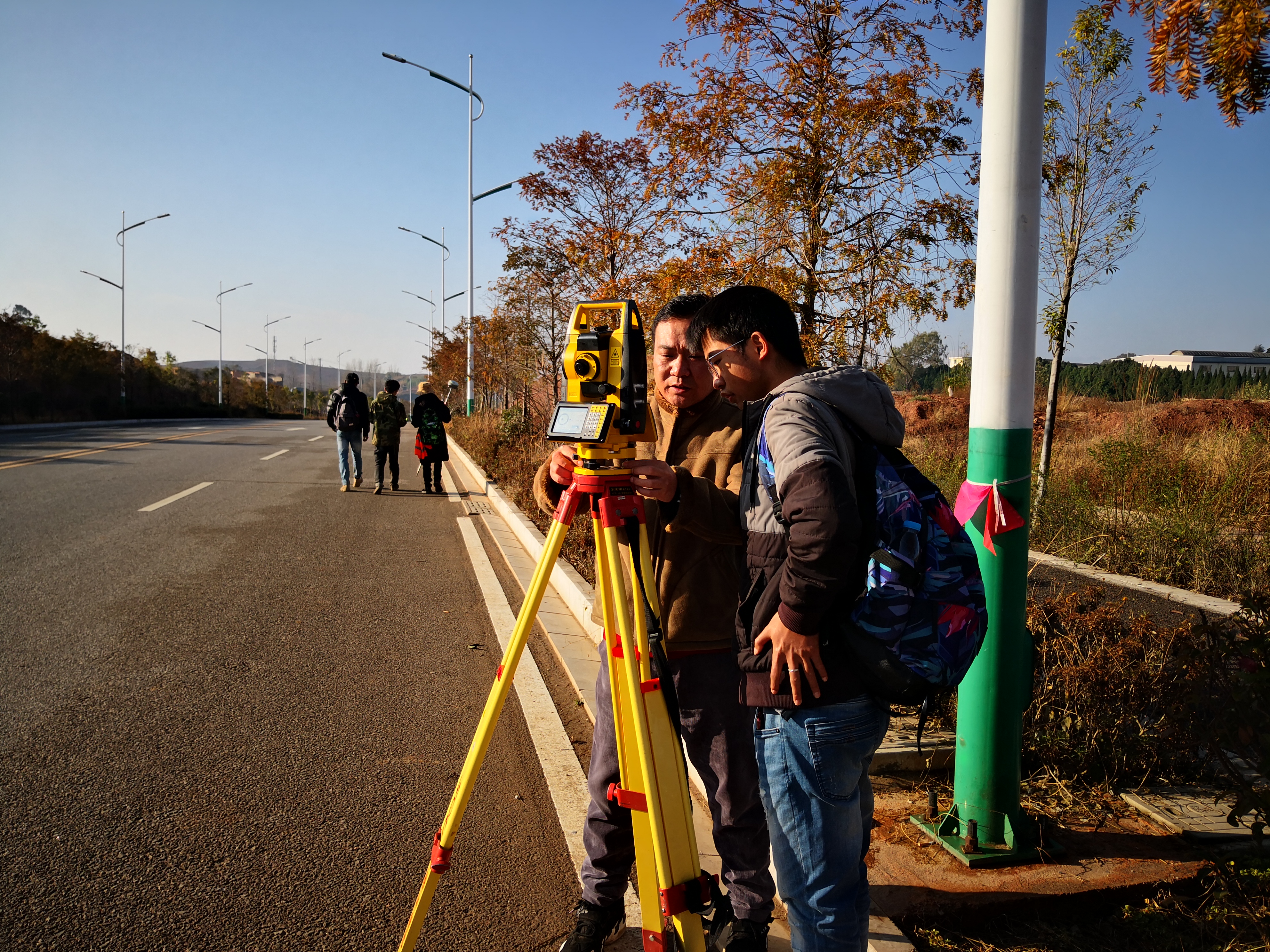 2019年12月19日上午在公司谭泽飞书记、张庆文副经理、教学秘书谢婷婷一行来到石林校区实习现场进行考察、指导。鼓励同学们努力学好测绘仪器操作、计算、绘图,打好基本技能功底。