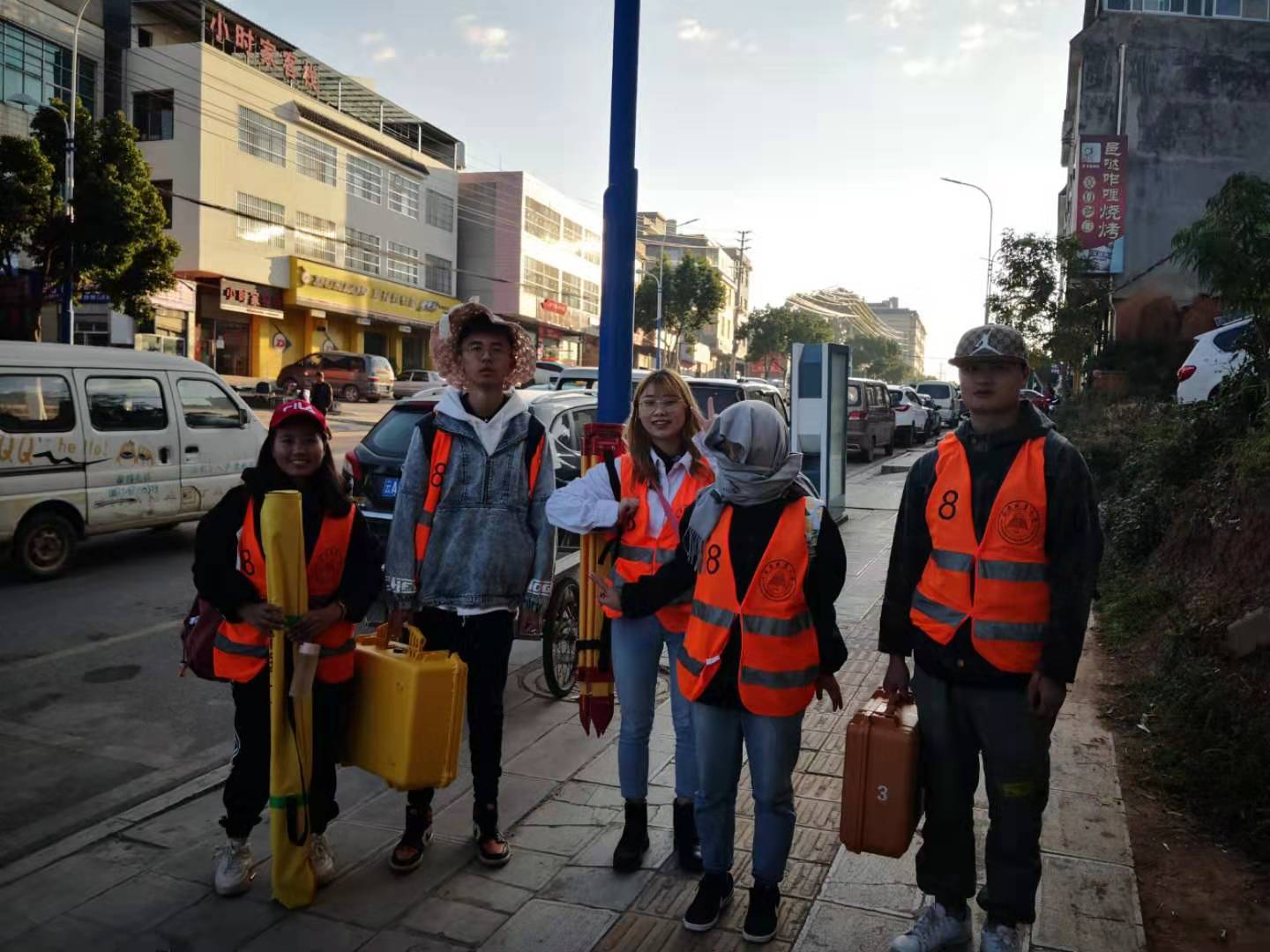 实习中,同学们早晨迎着晨曦,抵御着冬天的低温,冒着小雨,傍晚在夕阳下归来,早出晚归,俨然一幅辛勤劳动者模样。