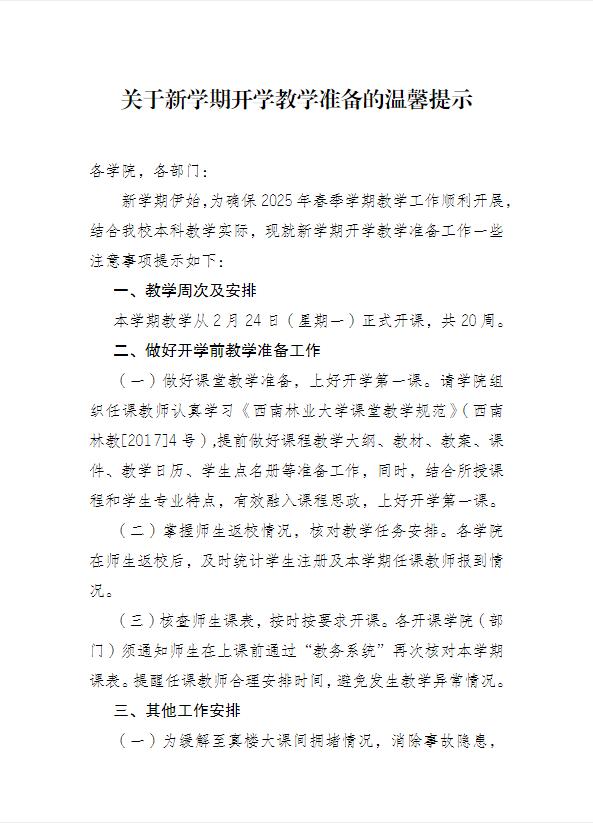 关于新学期开学教学准备的温馨提示
